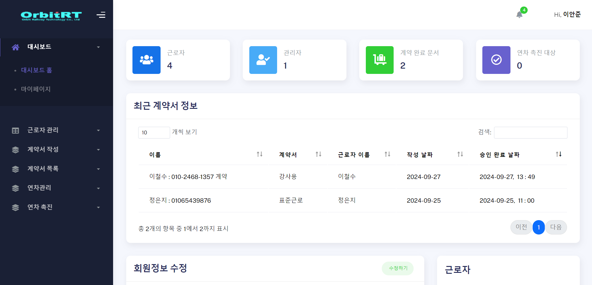 모든 계약서와 연차 관리가 한곳에서 이루어져,